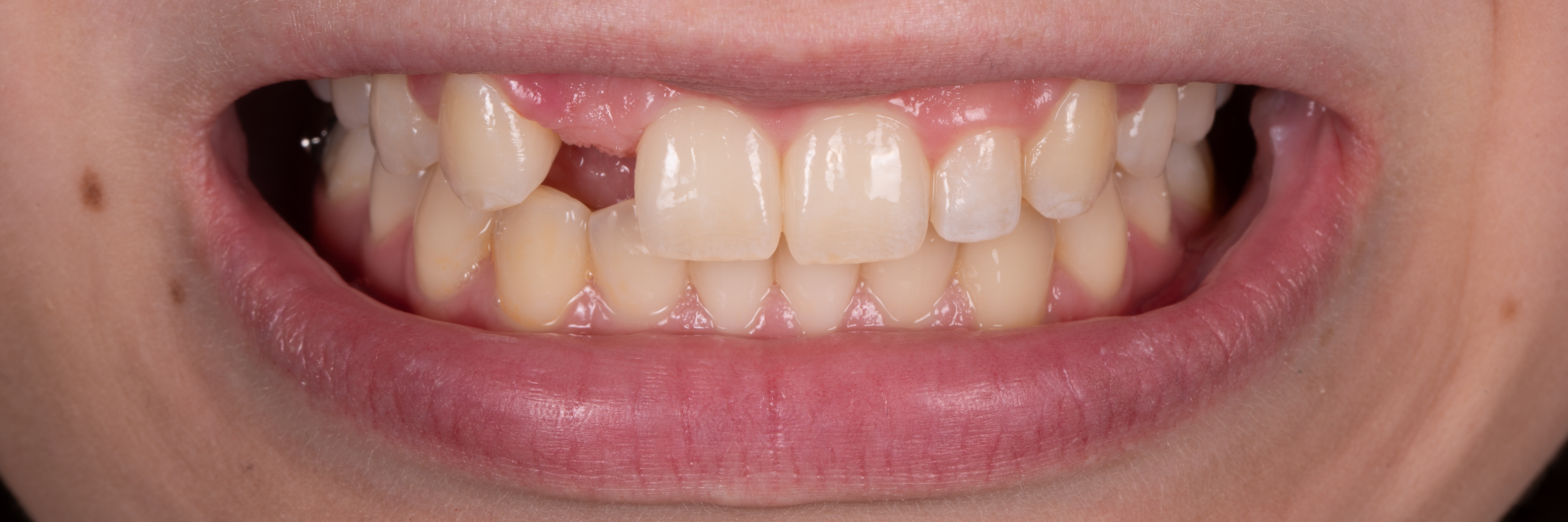 Slečnu Kláru trápil chybějící pravý horní malý řezák. Tato ztráta zubu ovlivnila estetiku jejího úsměvu a mohla mít v budoucnu i funkční dopad na chrup.